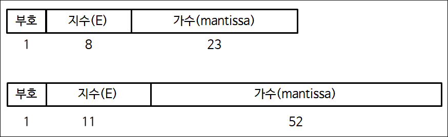 정밀도에 따라 float(단정밀도),  double(배정밀도)로 나뉘며,
