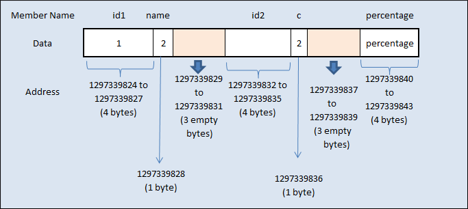 가장 큰 원시자료형의 크기에 맞추어 중간중간에 패딩을 삽입한다.