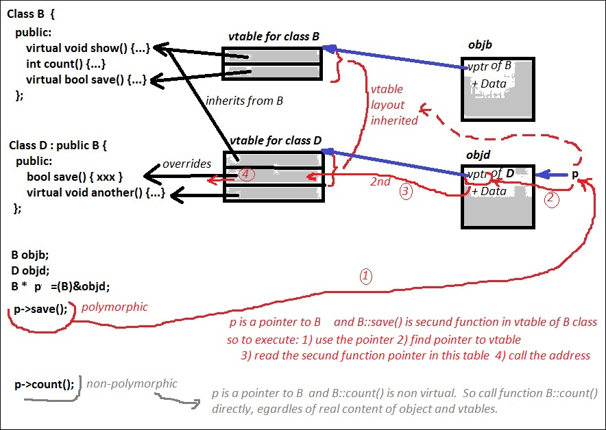 함수는 호출되는 시점에서, 해당 자료형의 가상 테이블을 확인하기 때문이다.