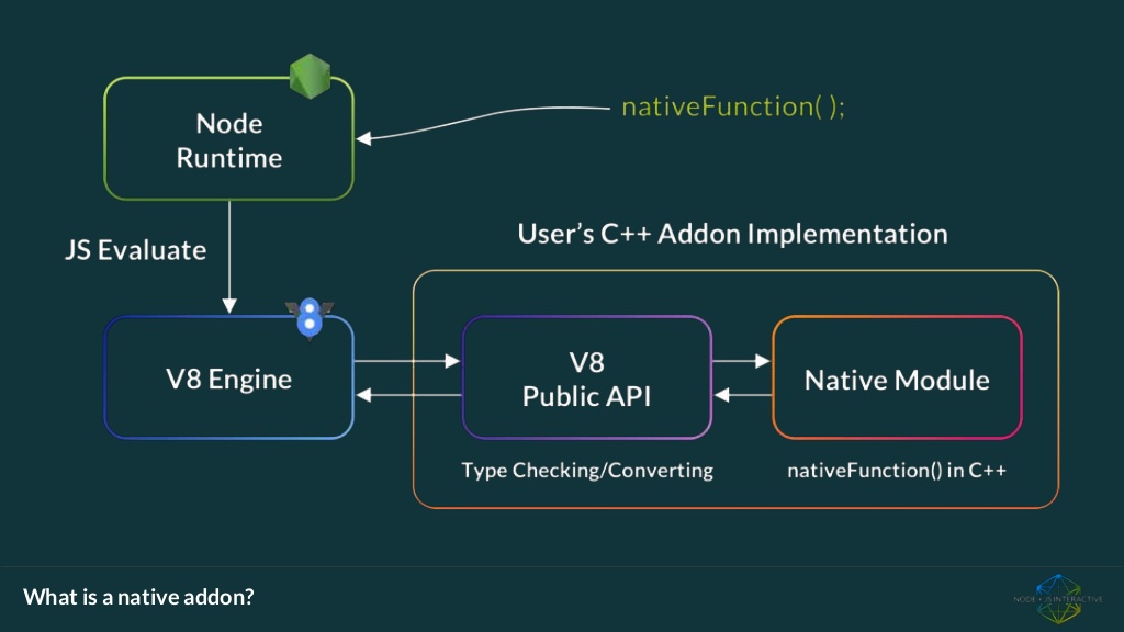 Node.JS는 결국 V8 엔진에 의하여 동작하기 때문에, Node.JS가 의존하는 V8엔진의 헤더와 소스코드를 그대로 사용하여 코드를 작성하면, Node.JS에서 사용가능한 C/C++코드가 완성됩니다.