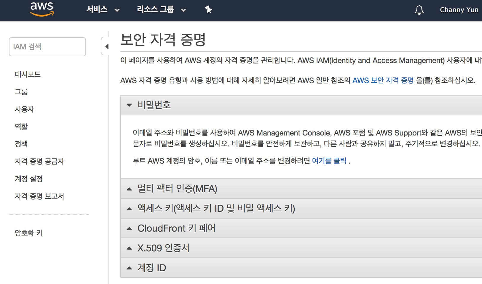 아마존 서비스를 프로그램에서 사용하기 위해서는 공개 액세스 키와 비밀 액세스 키가 컴퓨터 자체에 설정되어 있거나, 파일의 형태로 저장되어 있어야 합니다. 액세스 키는 보안 자격 증명에서 발급받을 수 있습니다.