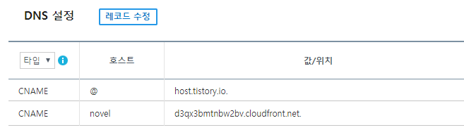 레코드로 등록하면 개인 도메인에 붙일 수 있습니다.