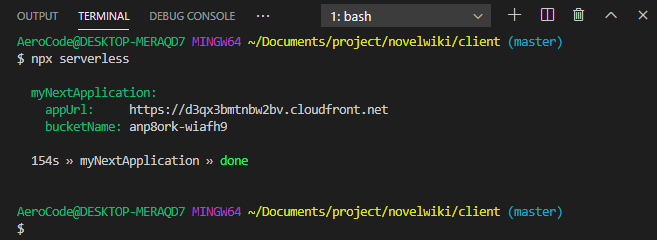 이런 사용자들의 니즈를 알아챈 NextJS는 Serverless-Componenet라는 이름으로 아예 빌트인시켜 버립니다. 기존 코드에서 아무런 수정없이 serverless.yml만 작성하고 다음의 마법같은 명령어를 입력하면 끝이죠. 😙
