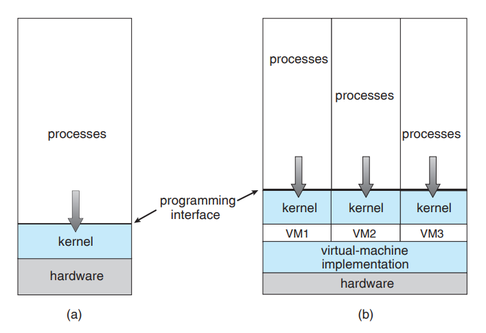 을 사용하도록 만드는 것입니다. 이러한 접근을 통해 컴퓨터의 하드웨어를 동일한 하드웨어를 공유하면서도 다수의 각기다른 실행환경을 제공할 수 있게 되었습니다.