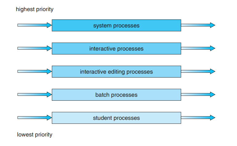 당연하지만 각각의 큐는 서로다른 스케쥴링 알고리즘을 가질 수 있고, 큐 간의 우선도도 서로 다를 수 있습니다.