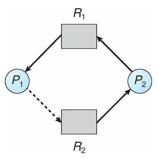 각 자원이 1개인 경우: 사이클 검사만으로 충분합니다.각 자원이 N개인 경우: 은행원 알고리즘으로 안전순서가 있는지 검사합니다.